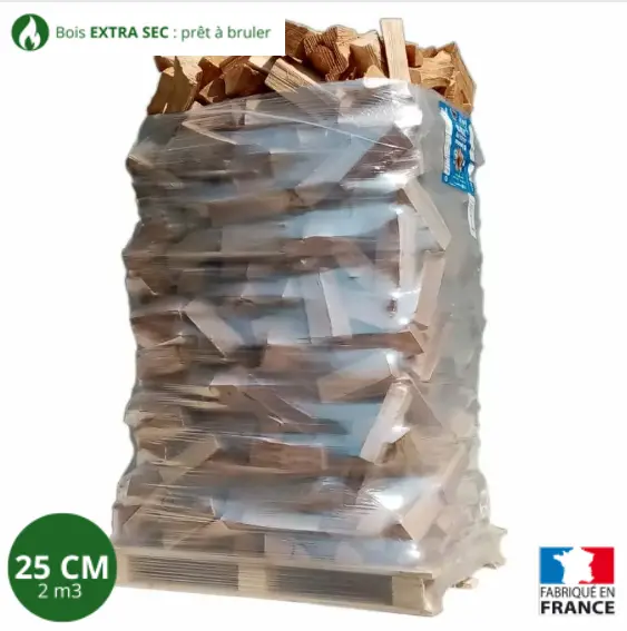 Bois de chauffage – 25 cm – ballot sur palette – 2 m3 – Extra Sec