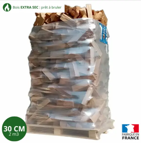 Bois de chauffage – 30 cm – ballot sur palette – 2 m3 – Extra Sec