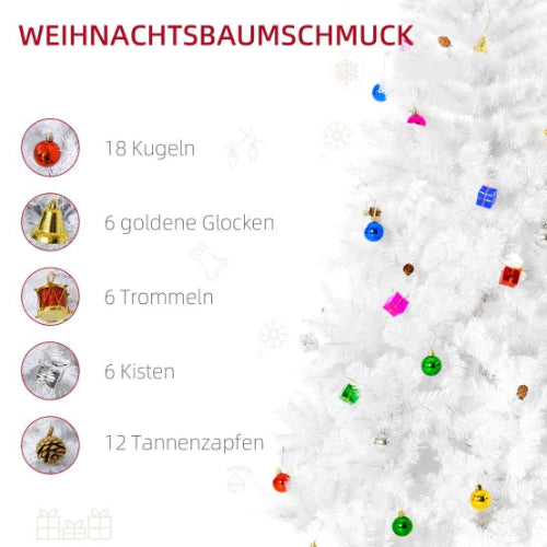 Sapin de Noël artificiel 180cm PVC blanc avec décorations pour fêtes